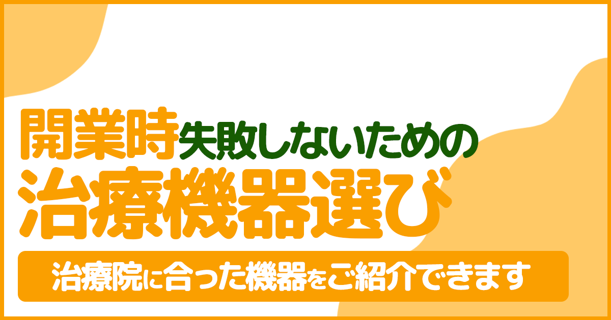 開業時の「治療機器選び」で失敗しないために― 治療院に合った機器をご紹介できます ―